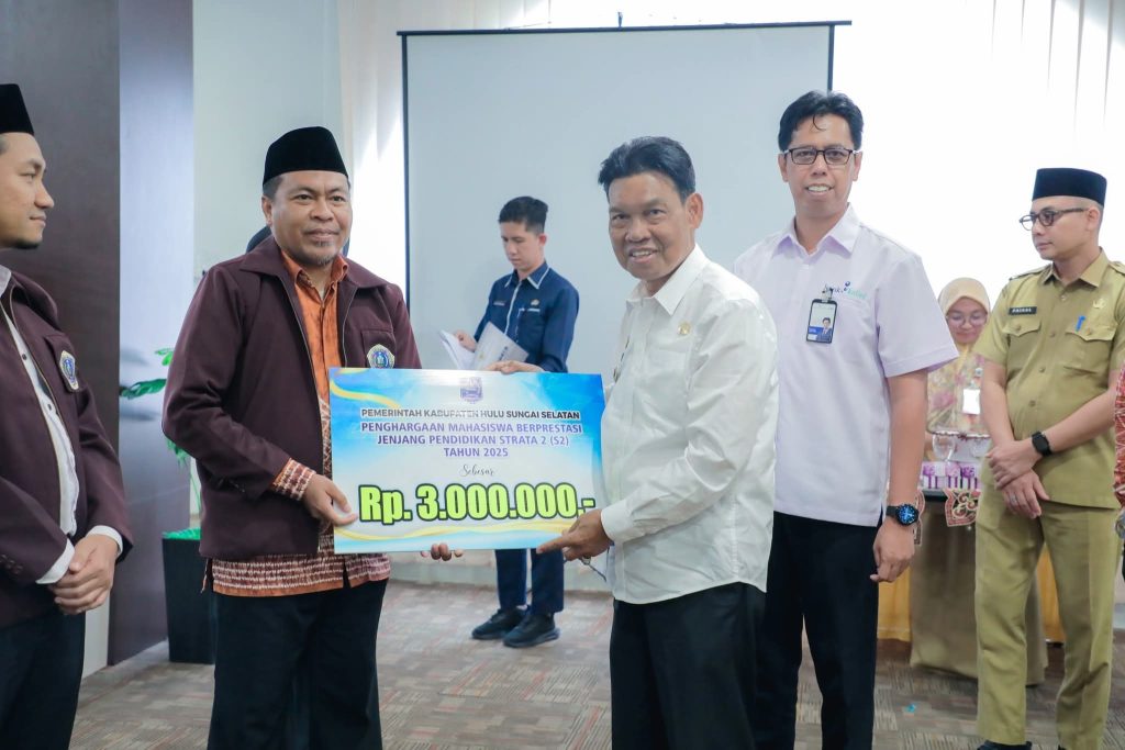 Banjartv.com, Hulu Sungai Selatan – Pemerintah Kabupaten Hulu Sungai Selatan menegaskan komitmennya terhadap peningkatan kualitas pendidikan dengan memberikan Bantuan untuk Mahasiswa Berprestasi. Sebanyak 195 mahasiswa penerima yang terdiri dari berbagai jenjang studi, secara simbolis menerima penghargaan tersebut yang dilaksanakan di Aula Mall Pelayanan Publik (MPP), Lantai III Pasar Los Batu, Kandangan. Senin (24/11/2025)