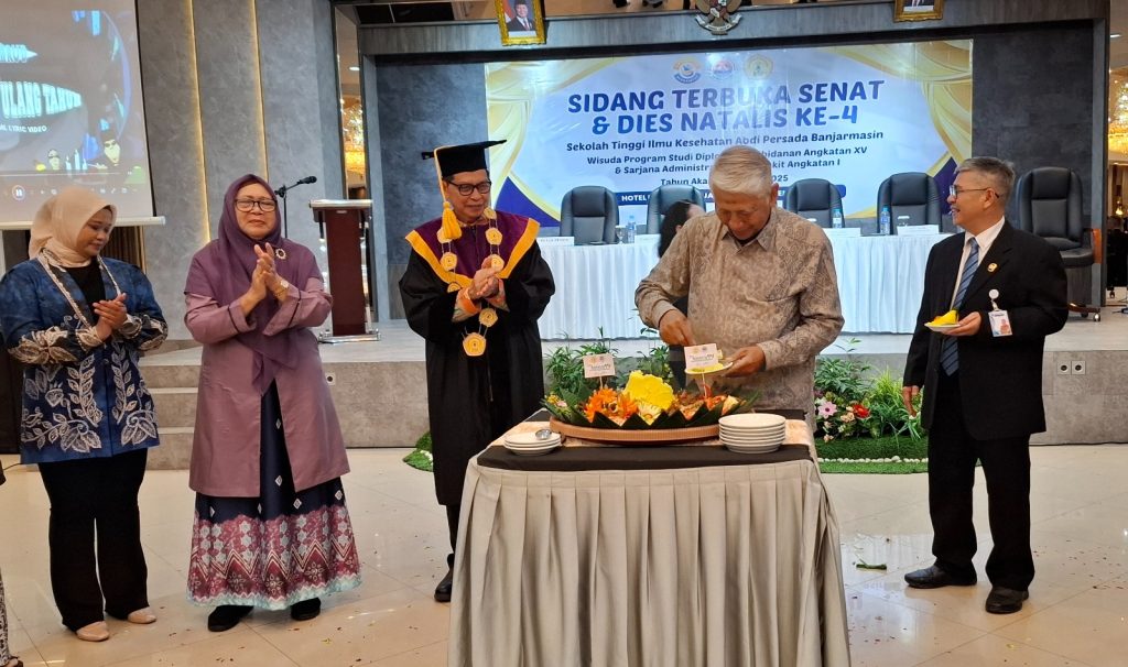 Banjartv.com, Banjarmasin – Sekolah Tinggi Ilmu Kesehatan (STIKES) Abdi Persada Banjarmasin resmi mewisuda 37 mahasiswa, terdiri dari 26 lulusan Program Studi D3 Kebidanan angkatan ke-15 dan 11 lulusan Sarjana Administrasi Rumah Sakit angkatan pertama. Prosesi wisuda berlangsung khidmat melalui Sidang Terbuka Senat yang dirangkai dengan Dies Natalis ke-4, di salah satu hotel di Banjarmasin, Senin (10/11/2025).