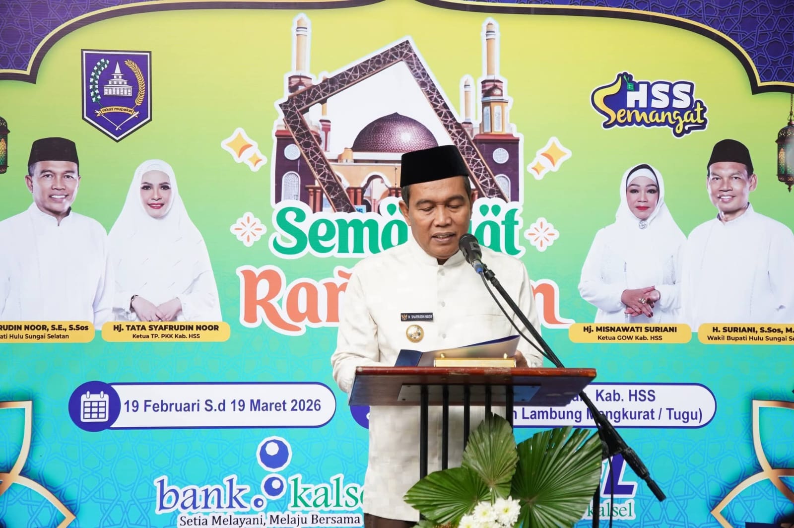 Dalam sambutannya, Bupati HSS menyampaikan ucapan selamat menunaikan ibadah puasa Ramadan 1447 Hijriah kepada seluruh masyarakat.