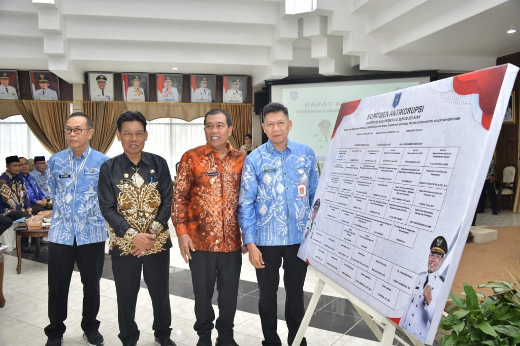BANJARTV.COM, KANDANGAN – Pemerintah Kabupaten Hulu Sungai Selatan (HSS) menegaskan komitmennya dalam mewujudkan tata kelola pemerintahan yang bersih melalui penandatanganan komitmen antikorupsi pada Rapat Koordinasi (Rakor) bulanan yang digelar di Pendopo Bupati HSS, Jumat (10/4/2026).