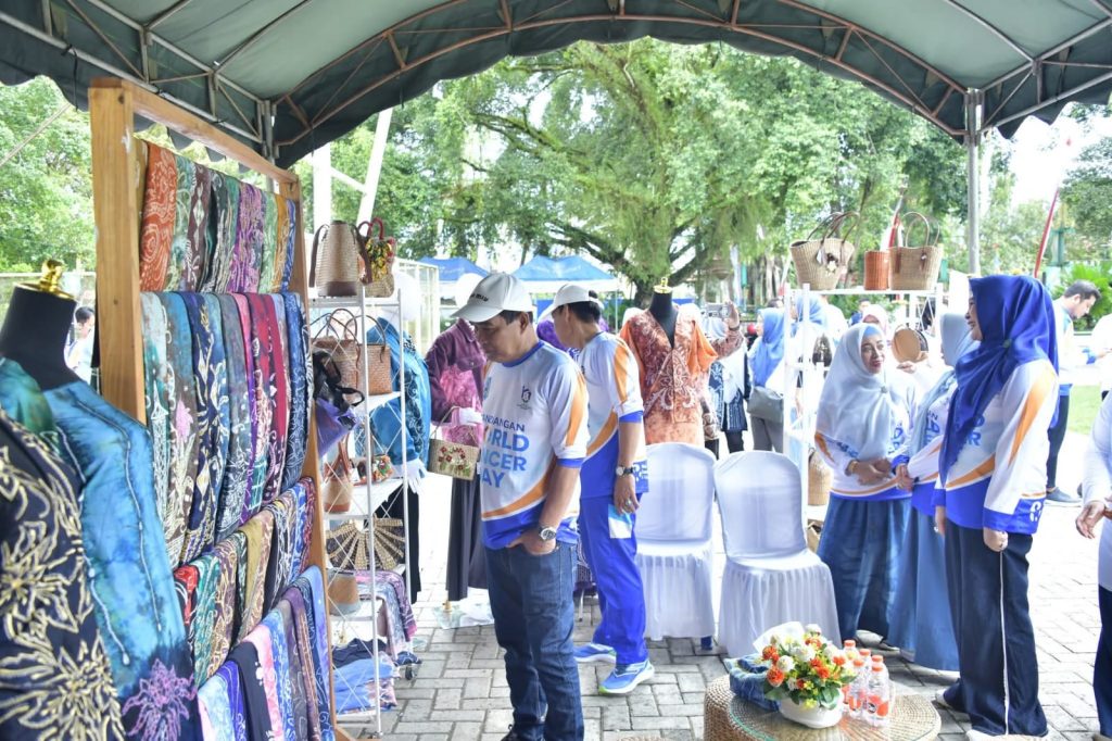 Selain itu, kegiatan juga diramaikan bazar yang menghadirkan produk kain sasirangan dari Dekranasda serta aneka olahan UMKM. Hasil penjualan bazar akan disumbangkan kepada Yayasan Kanker Indonesia Cabang HSS sebagai bentuk kepedulian terhadap penderita kanker.
