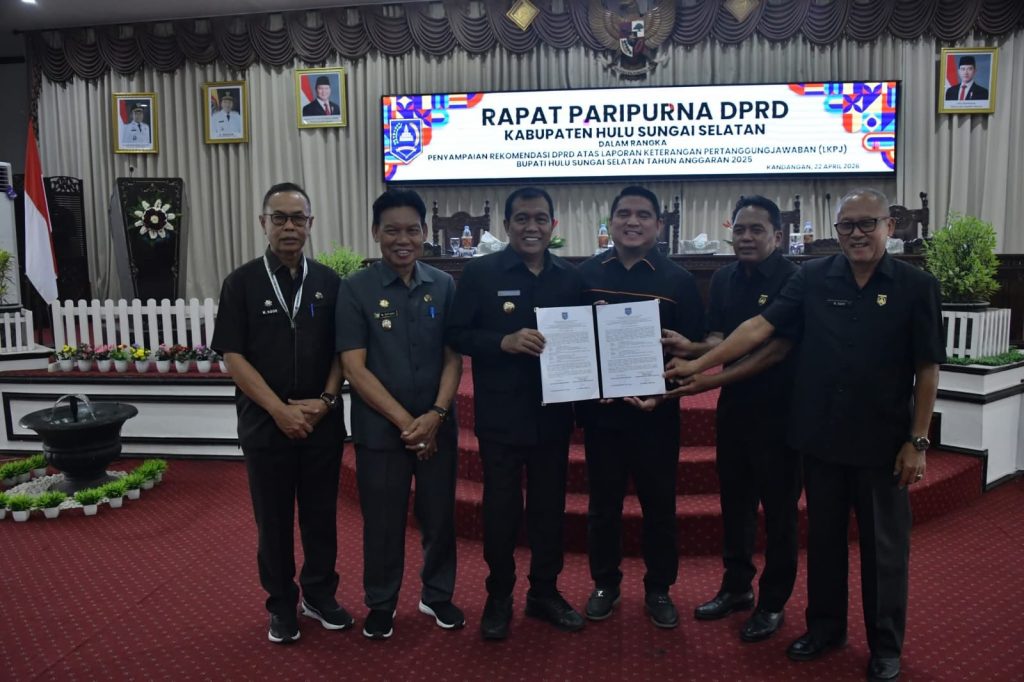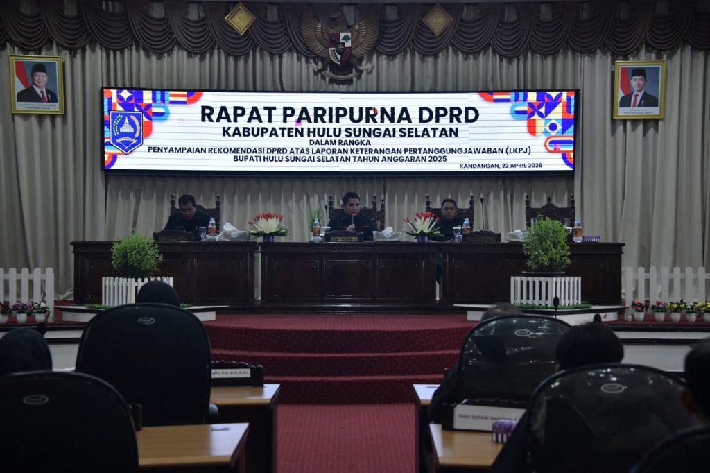 BANJARTV.COM, KANDANGAN – Dewan Perwakilan Rakyat Daerah (DPRD) Kabupaten Hulu Sungai Selatan (HSS) menyampaikan rekomendasi terhadap Laporan Keterangan Pertanggungjawaban (LKPJ) Bupati Tahun Anggaran 2025 dalam rapat paripurna, Rabu (22/4/2026).
