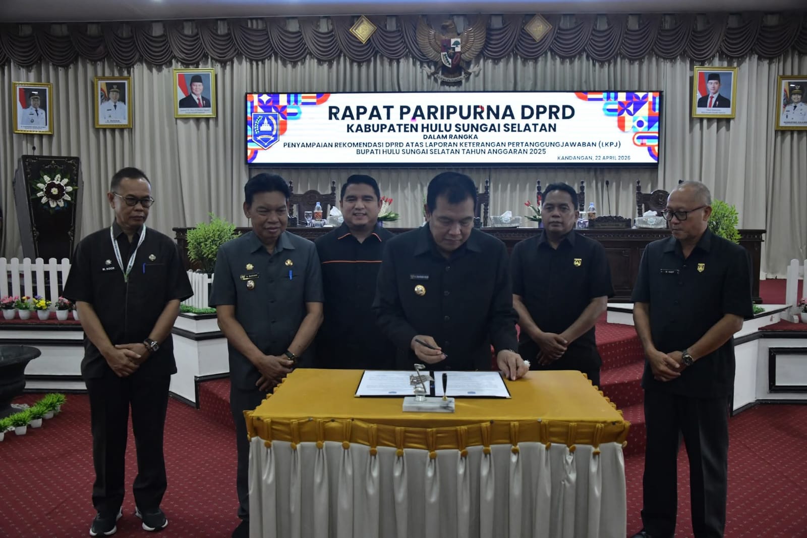 Rapat paripurna dipimpin Ketua DPRD HSS H. Ahmad Fahmi, didampingi Wakil Ketua H. Husnan dan H. M. Kusasi. Dalam forum tersebut, anggota DPRD HSS Rahmad Iriadi membacakan rekomendasi dewan atas LKPJ Tahun Anggaran 2025.